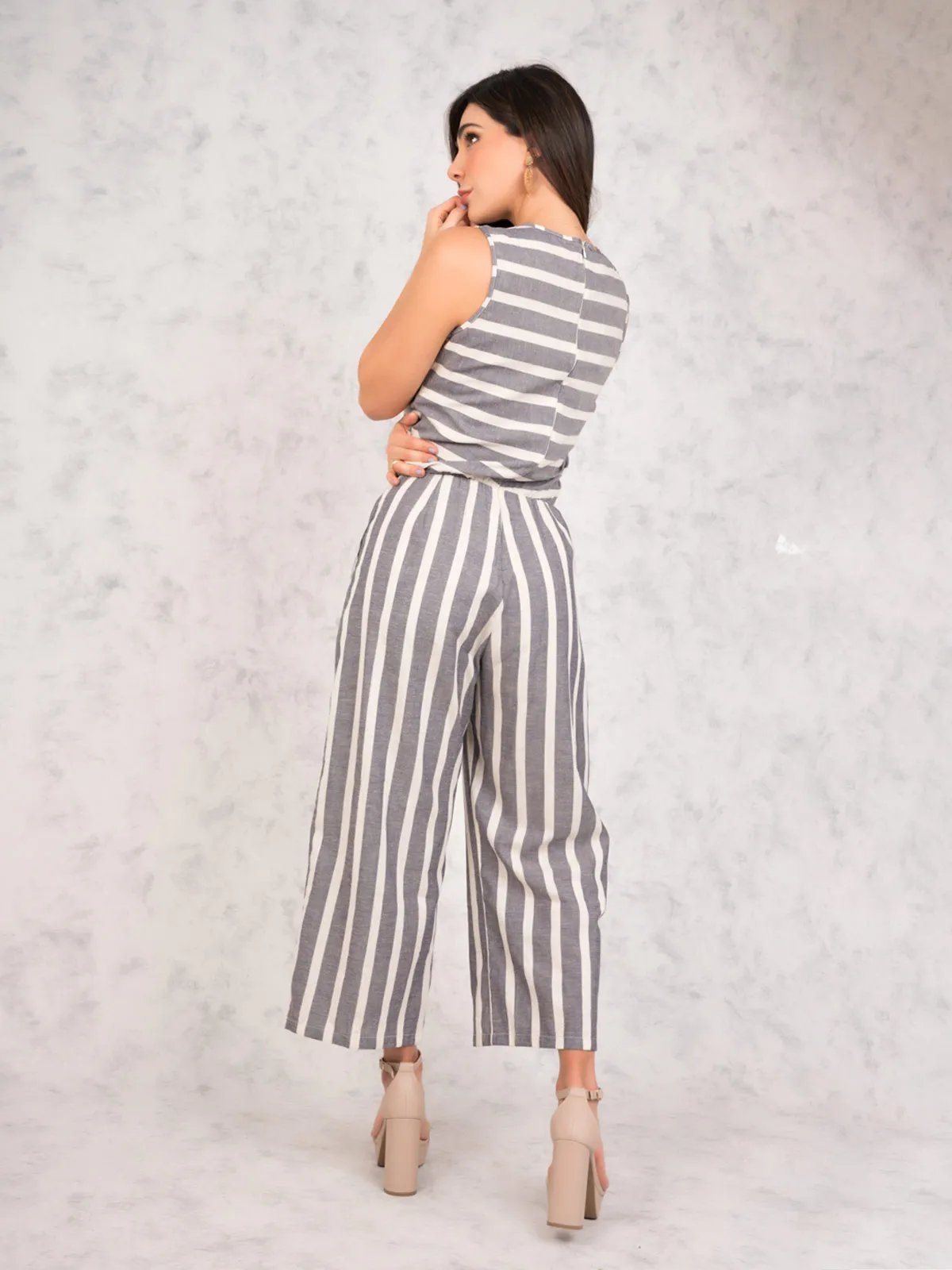 Lino Algodon Rayas Azul